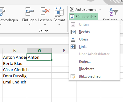 #Excel2013 #Blitzvorschau macht ein noch besseres „Automatisches Ausfüllen“ möglich. Wenn’s eine Liste mit Textwurstinhalt gibt, und Sie brauchen in einer neuen Spalte zB jeweils das erste Wort, so genügt es, wenn Sie das Excel ein Mal mitteilen; den Rest erledigt die (ein bissl versteckte – Start-Registerkarte – Bearbeiten-Gruppe – Füllbereich) Blitzvorschau („Flash Fill“).