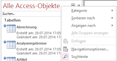 Ach, Sie haben keine Suchleiste? Die bekommen Sie, wenn Sie auf den Header des Navigationsbereichs mit der rechten Maustaste klicken und den Eintrag „Suchleiste“ im sich öffnenden Kontextmenü aktivieren.