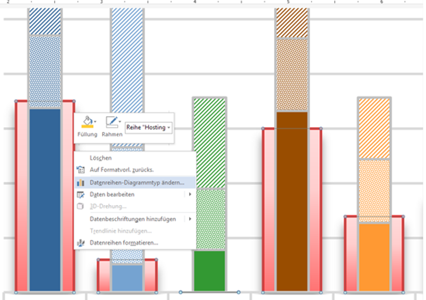 Klicken Sie wieder mit der rechten Maustaste auf eine der Datenreihen, und wechseln Sie mit Datenreihen-Diagrammtyp ändern in den Diagrammtyp-Dialog.