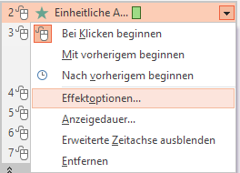 Klicken Sie doch im Animationsbereich mit der rechten Maustaste auf eine Animation. Hier gibt es noch ein paar Effektoptionen zu entdecken – ganz detaillierte Einstellungen für die Dauer der Animation beispielsweise, für die Verzögerung, … Damit wird Ihre Animation noch einmal deutlich treffsicherer.
