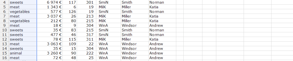 Beginnen wir heute mit der Funktion ZÄHLENWENN. Sie zählt für Sie nur ausgewählte Daten. Dafür möchte sie von Ihnen zwei Informationen haben: Den Bereich, in dem sich die zu zählenden Daten befinden, und das Kriterium, das fürs Zählen angewendet werden soll. In unserem Beispiel ZÄHLENWENN(A2:A20;“meat“) werden im Bereich A2:A20 alle Einträge gezählt, die meat lauten. (Und weil meat ein Text ist, braucht er Gänsefüßchen „ als Begrenzung.) Sieben Stück – Sie können gerne nachzählen, sich aber ruhig auf Excel verlassen.