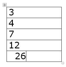 Aber ja! Nicht besonders elegant, aber immerhin richtig. Folgendes zum Beispiel kann ab und zu ganz nützlich sein: Sie haben eine Tabelle in Word, in der eine Spalte Zahlen enthält. Vielleicht schreiben Sie ein Angebot oder eine Rechnung, eine Analyse oder einen Bericht. Na, jedenfalls hätten Sie darunter gerne die Summe der eingegebenen Zahlen.