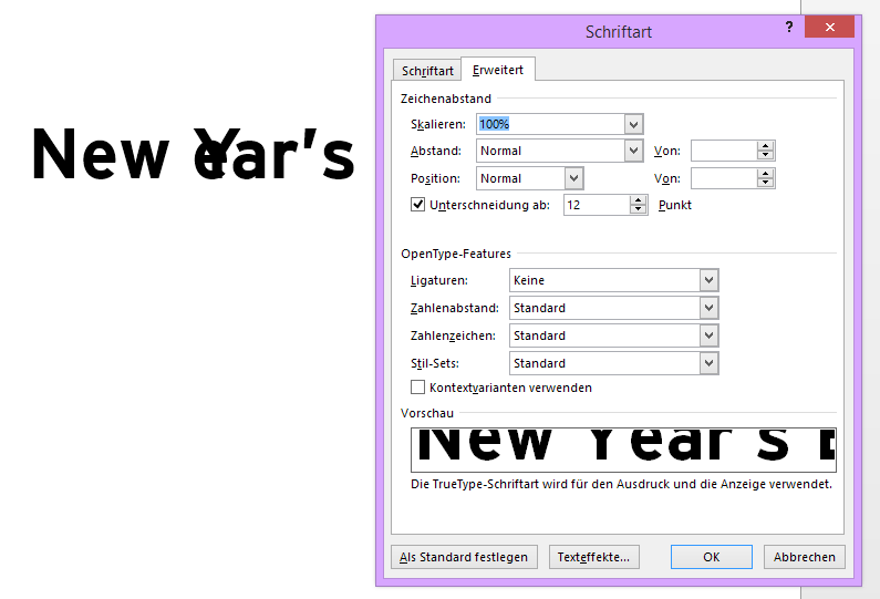 Das gestern beschriebene Problem gibt’s auch in Word: Unterschneidung macht Ihren Text nicht immer ästhetischer, sondern manchmal ganz schön konfus. Sie wollen sicher auch für Word wissen, wie man den Spuk abstellt.