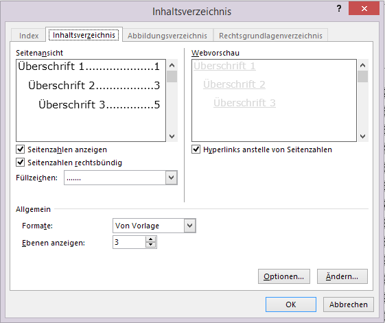 Und – wichtig! – wie viele Ebenen sollen in das Inhaltsverzeichnis einfließen? 3? Mehr? Weniger?