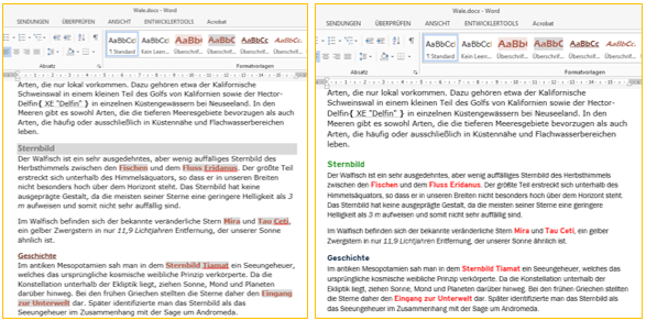 Die wesentlichsten Optionen bei Word-zu-Word sind