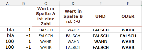 Gestern haben wir Bedingungen mit Hilfe der UND-Funktion so verbunden, dass wir nur dann ein WAHR als Ergebnis bekommen, wenn alle Bedingungen WAHR sind.
