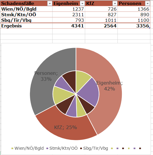 Heut gibt’s wieder ein Spezialdiagramm: Insbesondere Controller schätzen es ja, wenn Daten so visualisiert werden, dass beim Betrachter auch komplexere Sachverhalte leicht verständlich ankommen, und das heutige Beispiel löst ein Problem, das auf http://www.controllingportal.de/Fachinfo/Excel-Tipps/Excel-Diagramme/Kreis-in-Kreis-Diagramm.html beschrieben wird: