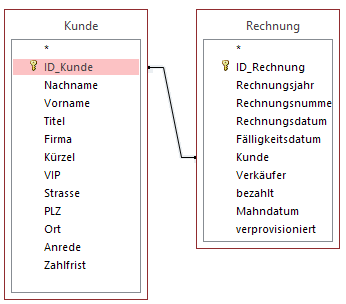 Das muss nicht so sein. Doppelklicken Sie einmal auf den diagonalen Teil der Beziehungslinie. Schon geht ein Fenster auf mit den Verknüpfungseigenschaften auf: