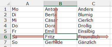 Springen Sie mit Hilfe Ihrer Tastatur an die letzte Zelle vor der nächsten leeren Zelle: