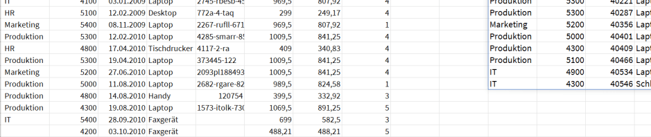 Nicht alle Daten – nur die teuren Geräte, nur die Laptops, nur die Daten von heuer, … das können Sie sich jetzt mit der Funktion FILTER aus Ihren Rohdaten „herausziehen“: