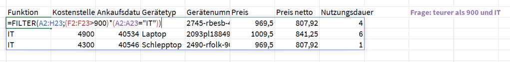 Die Fragestellung des Tages: die FILTER Funktion habe ich im Prinzip verstanden. Jetzt möchte ich aber nach MEHREREN Kriterien filtern – geht das?