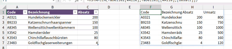 =HSTAPELN(Tabelle2[#Alle]; Tabelle1[[#Alle];[Umsatz]])