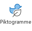 Die Auswahlmöglichkeiten hier werden für Office365 Abonnent:innen laufend mehr – wir beginnen einmal mit den Piktogrammen. Die sind nach Themen angeordnet (graue Schaltflächen) …